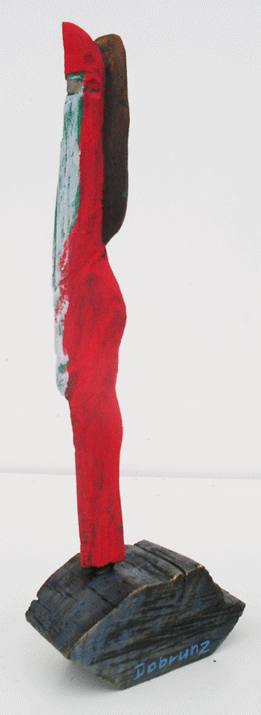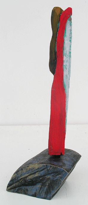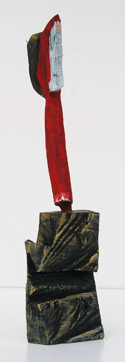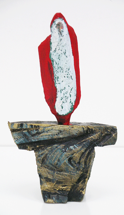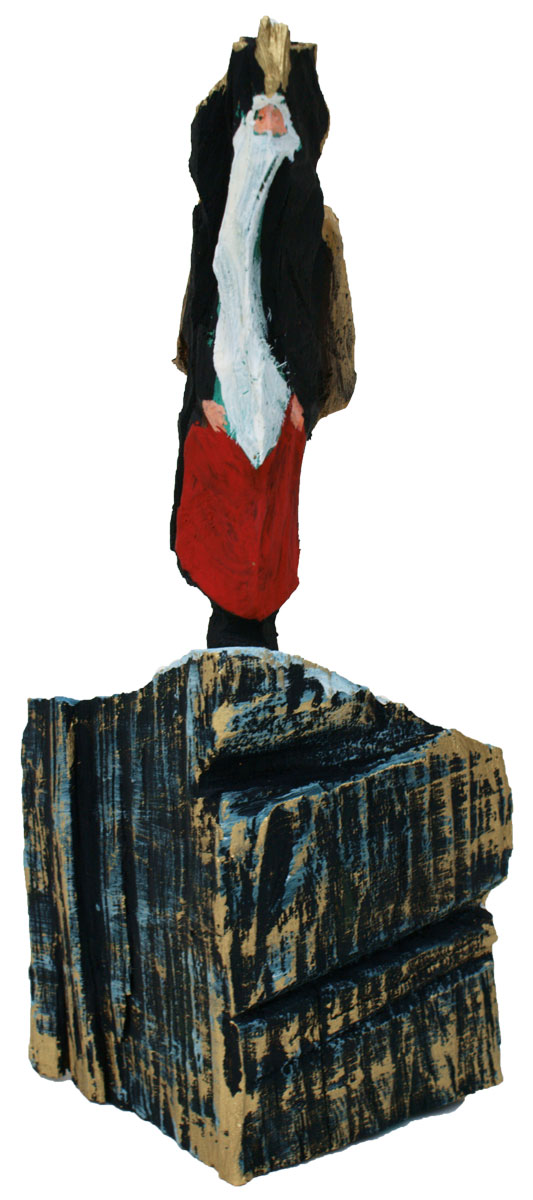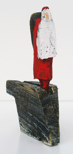 Aus den Reststücken der großen Skulpturen entstehen die Weihnachtsmänner. Sie verlieren übrigens zu keiner Jahreszeit ihre skulpturale Wirkung. Einen ähnlichen Entstehungsprozess finden Sie übrigens auch bei den Passanten, den Nachtgestalten und einigen Fußballern.