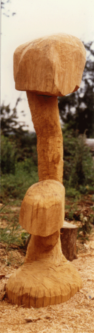 Skulpturen für den Skulpturenpark Pivečkův lesopark (Pivečka-Waldpark) in der tschechischen Stadt Slavičín, der mit vielen Holzskulpturen, einem Märchenwald-Thema, einem Teich und Spielmöglichkeiten wie einem Labyrinth und einer Kletterfigur Besucher anlockt und ein beliebtes Ausflugsziel in der Region Zlín ist.
