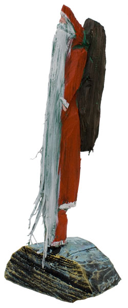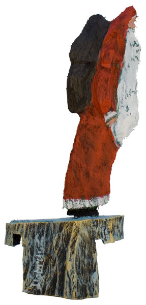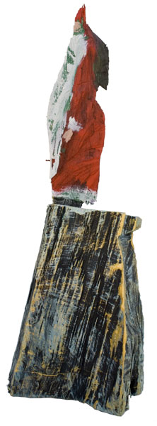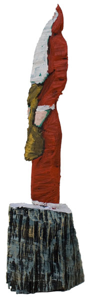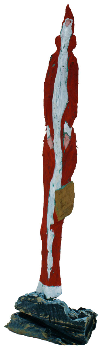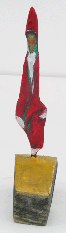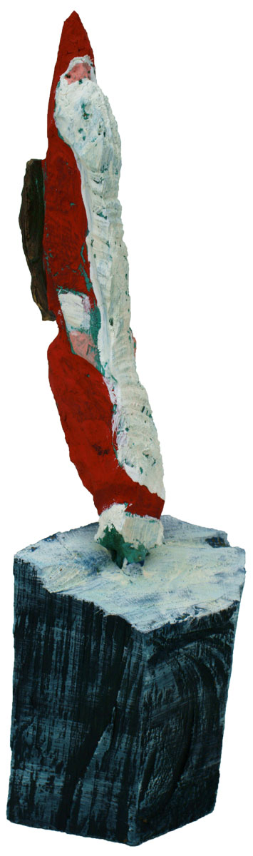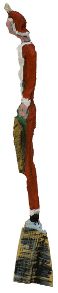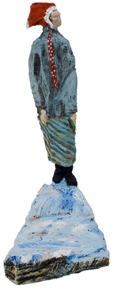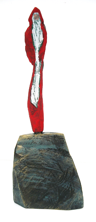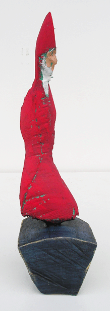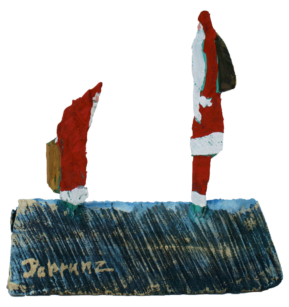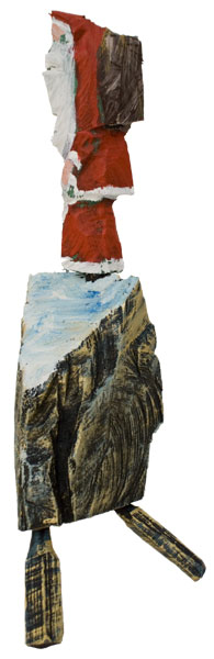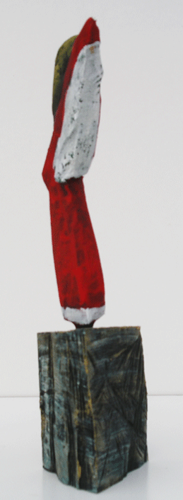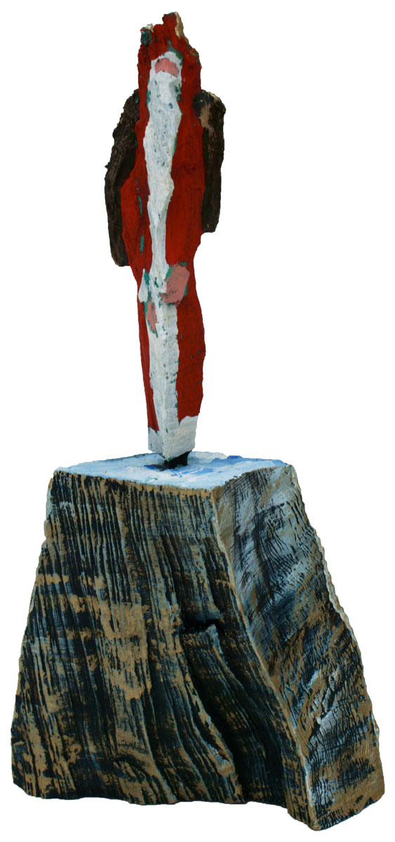 Aus den Reststücken der großen Skulpturen entstehen die Weihnachtsmänner. Sie verlieren übrigens zu keiner Jahreszeit ihre skulpturale Wirkung. Einen ähnlichen Entstehungsprozess finden Sie übrigens auch bei den Passanten, den Nachtgestalten und einigen Fußballern.