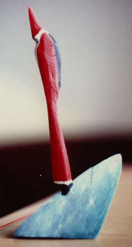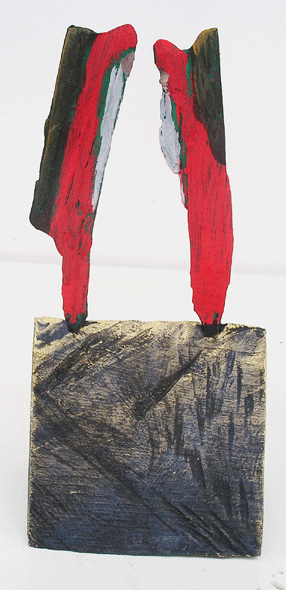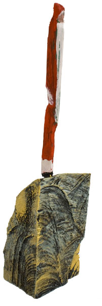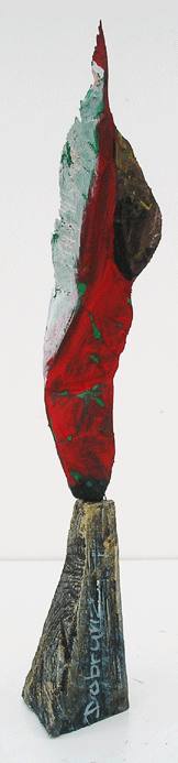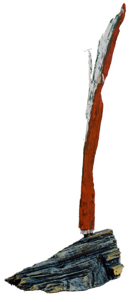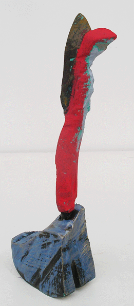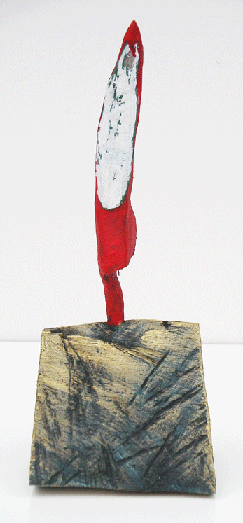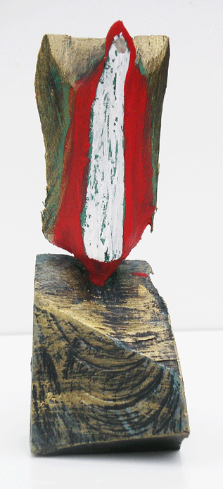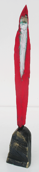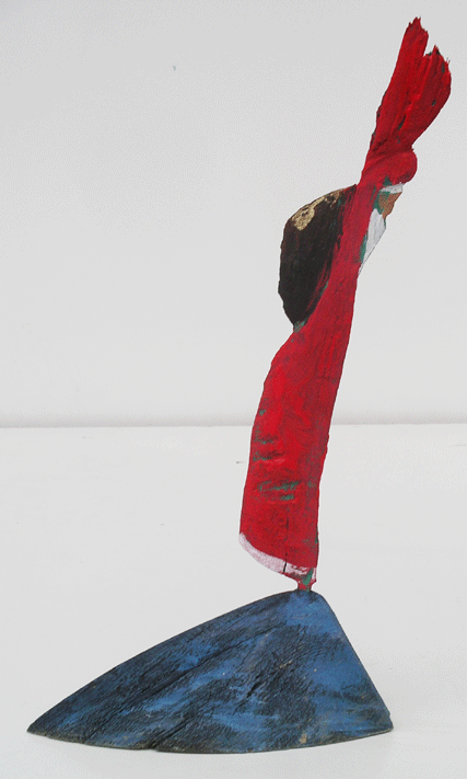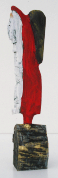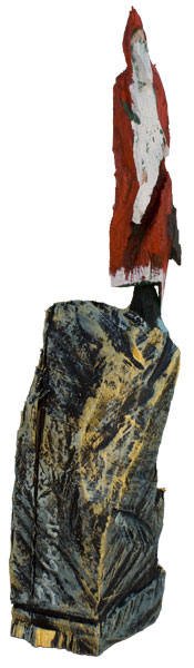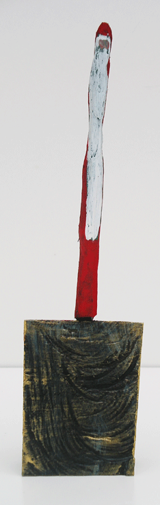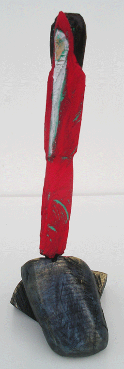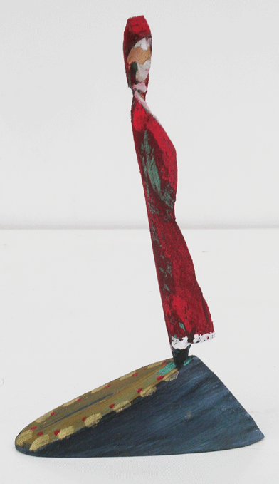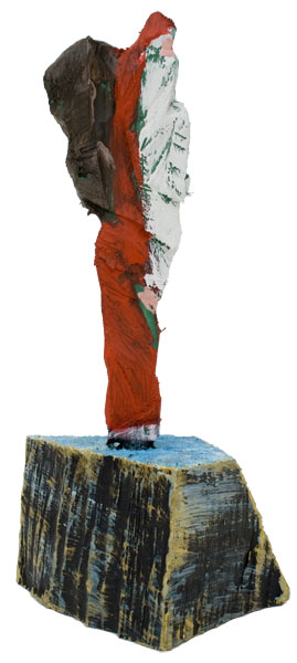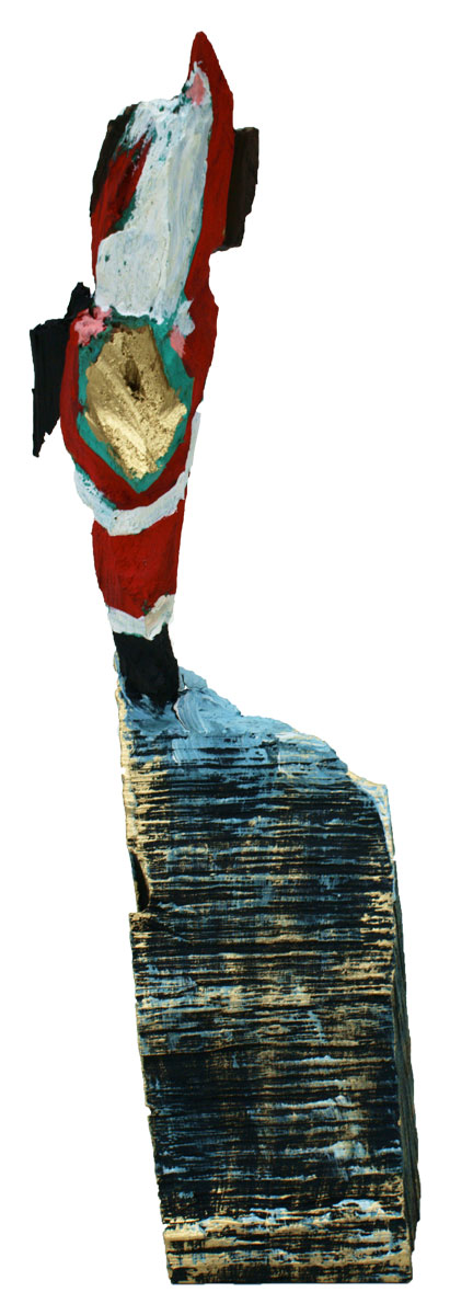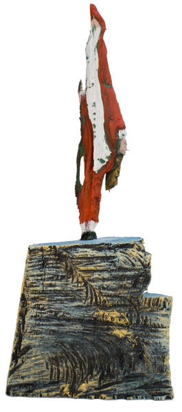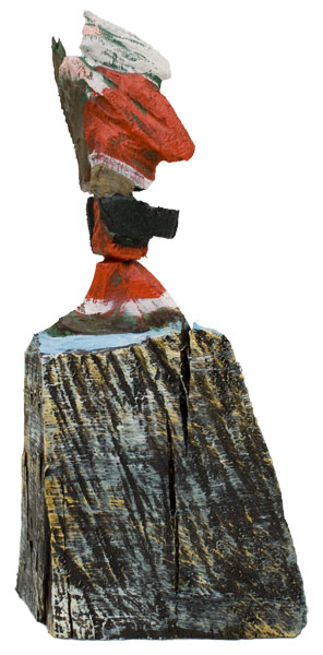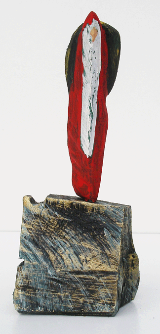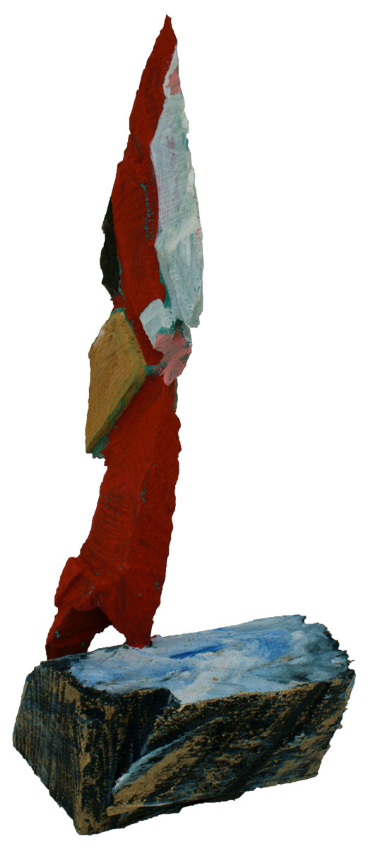 Aus den Reststücken der großen Skulpturen entstehen die Weihnachtsmänner. Sie verlieren übrigens zu keiner Jahreszeit ihre skulpturale Wirkung. Einen ähnlichen Entstehungsprozess finden Sie übrigens auch bei den Passanten, den Nachtgestalten und einigen Fußballern.